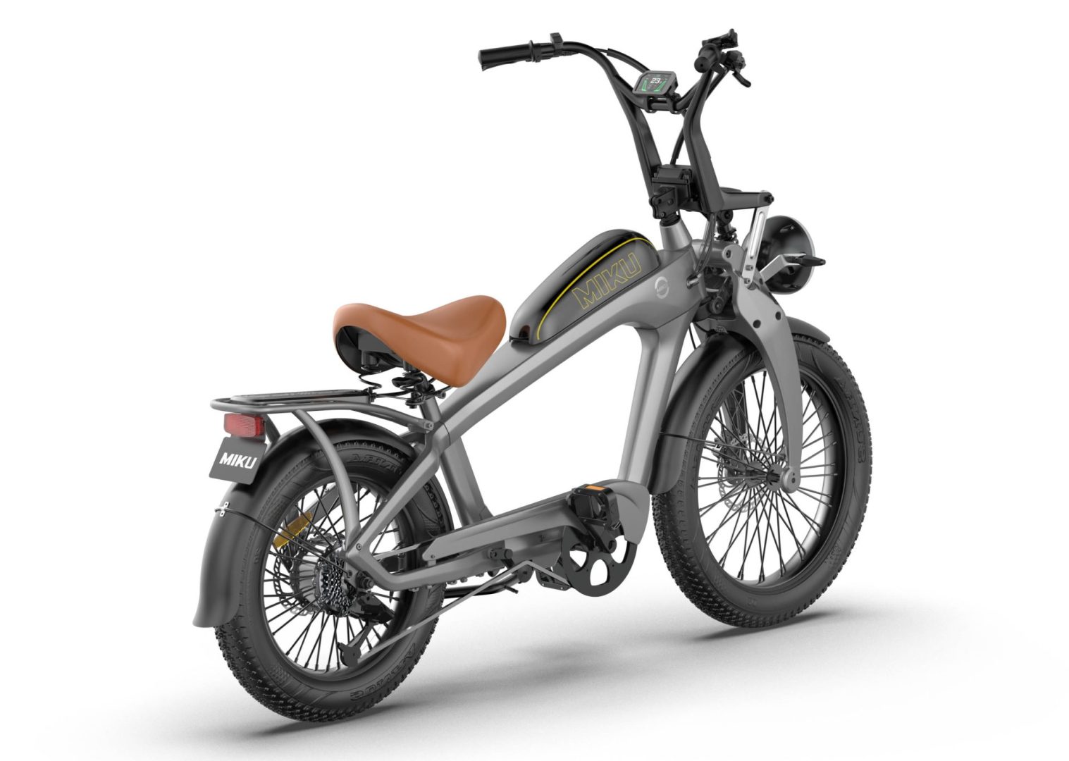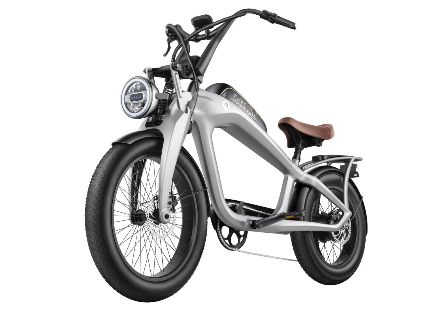 El aspecto estético del Retrolax es igualmente impactante. Inspirado en el diseño de las icónicas motocicletas chopper, este vehículo eléctrico destaca por su apariencia retro y cuidadosamente elaborada. Su chasis de aleación de aluminio y magnesio aporta ligereza y durabilidad, mientras que detalles personalizados como el manillar elevado estilo «cuelgamonos», los neumáticos anchos de estilo fat-bike y el asiento monoplaza de piel marrón evocan la nostalgia de las motos clásicas.